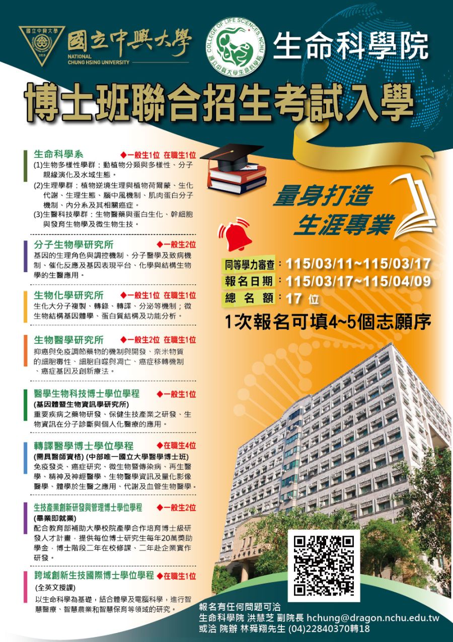 115學年度生命科學院博士班聯合招生考試入學Academic Year 2026 Fall Admission
